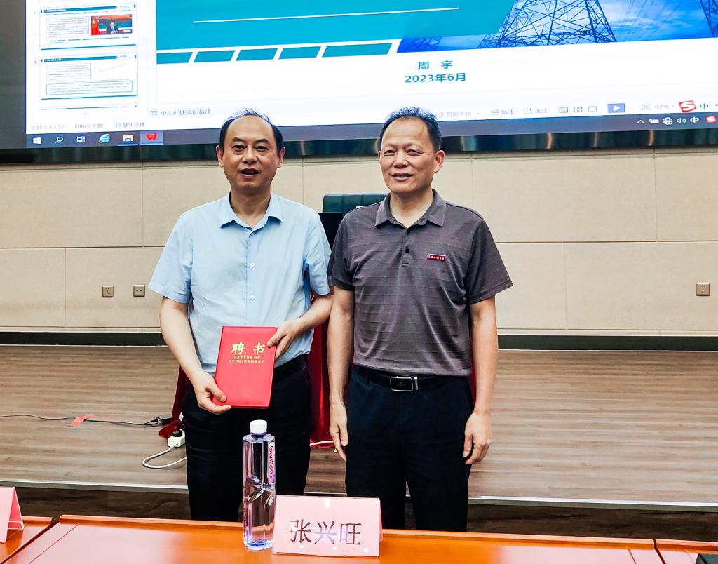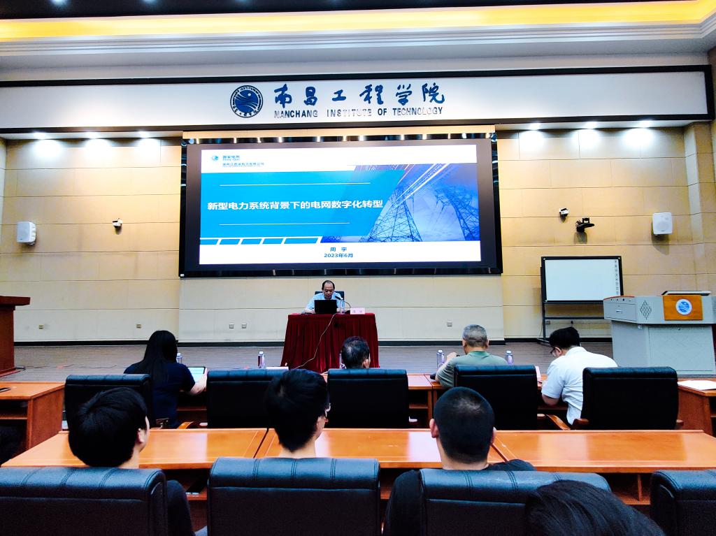6月16日下午,国网江西省电力有限公司副总工程师兼科技数字化部主任周宇一行3人莅临中心交流。中心主任、副校长张兴旺出席交流活动。 交流会上,张兴旺代表学校为周宇颁发聘书,聘任周宇为学校客座教授。随后,周宇为中心师生带来了题为《新型电力系统背景下的电网数字化转型》的学术讲座。电气工程学院近200名师生参加讲座。讲座由电气工程学院书记高週全主持。 讲座结束后,周宇一行还来到中心参观,对中心的建设给予高度评价。 张兴旺为周宇颁发聘书 “鄱湖学术讲坛”现场 周宇一行参观中心实验室