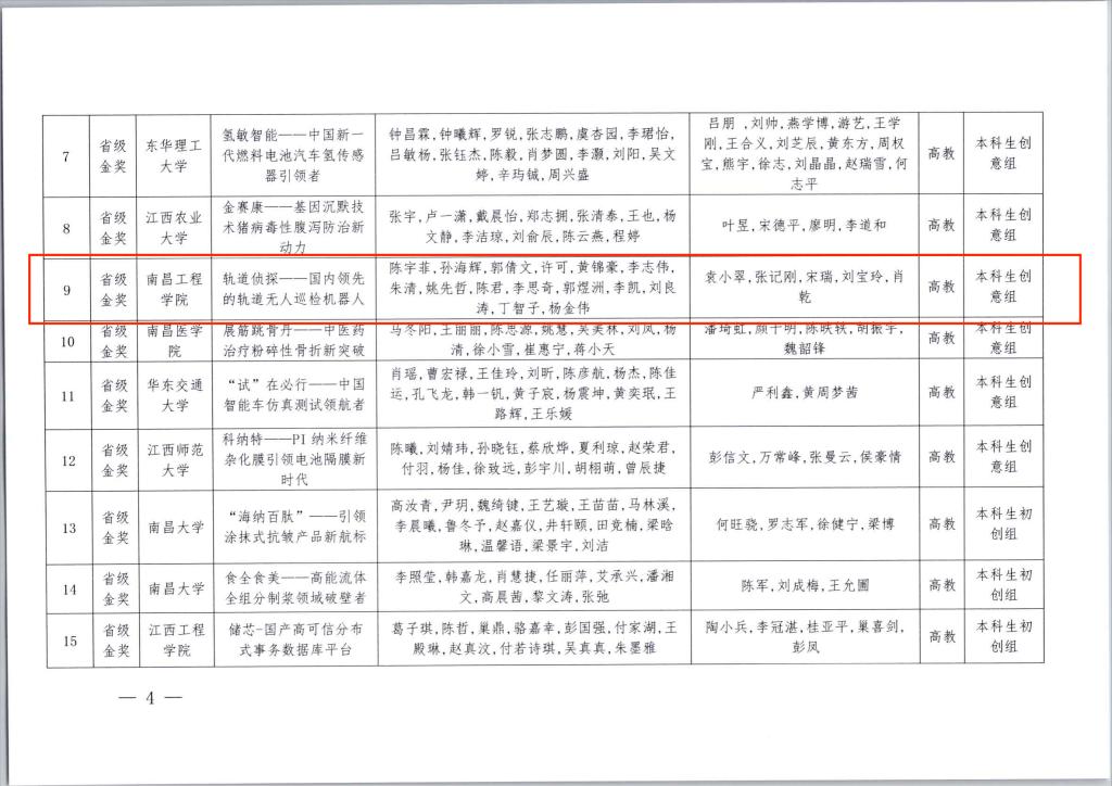 在第八届江西省“互联网+”大学生创新创业大赛中,袁小翠等指导学生的参赛作品《轨道侦探——国内领先的轨道无人巡检机器人》荣获省级金奖。