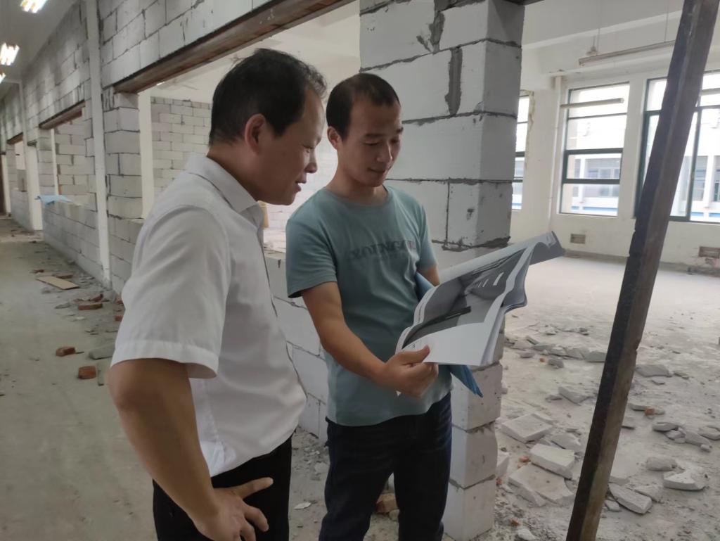 7月1日下午,副校长、中心主任张兴旺到现指导中心改造工作,认真听取施工方负责人装修基本情况与进度汇报,详细了解后续装修计划。张兴旺就中心现场装修过程中出现的具体问题进行了指导,并要求把施工安全与装修质量放在首位。